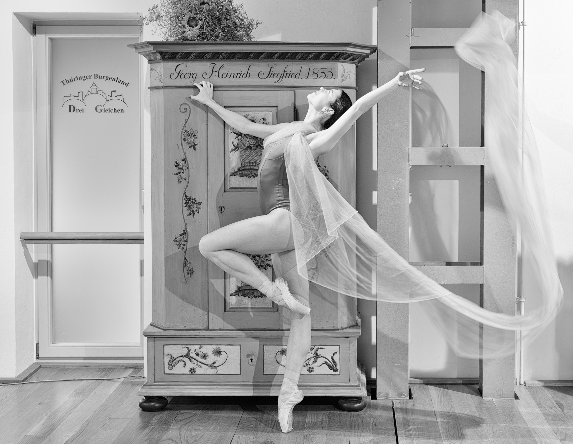 Die Fotos entstanden während eines Ballett-Fotoshootings in der Kulturscheune Mühlberg. Organisiert wurde die Veranstaltung von der Gesellschaft für Fotografie, Landesverband Thüringen. Switlana ist eine ehemalige professionelle Balletttänzerin. Sie tanzte an der Nationaloper der Ukraine. Vielen Dank für ihr Engagement!